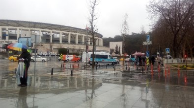 Saat 14:30’dan itibaren Beşiktaş civarında bir anda bastıran sağanak yağış, cadde ve sokaklardaki vatandaşlara zor anlar yaşattı.
