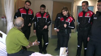 Hasta bakıcılarının durumu iletmesi üzerine İl Emniyet Müdürlüğü Asayiş Şube Müdürlüğüne bağlı yunus ekipleri, yaşlı adamı ziyaret ederek çiçek takdim etti.