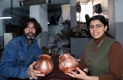 Avustralyalı bir çift, yaklaşık 13 bin kilometre uzakta olan Avustralya’dan Gaziantep’e bakır işlemeciliğini öğrenmek için geldi.