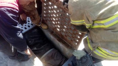 İzmir'de İlginç Olay Açıklaması Girdiği Mazgalda Sıkışıp Kaldı