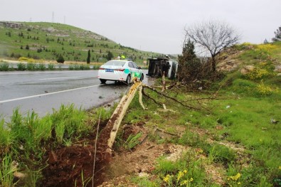 Servis Minibüsü Ağaçları Yerinden Söküp Devrildi