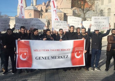 Milli Türk Talebe Birliği üyesi bir grup genç, Cumhurbaşkanı Recep Tayyip Erdoğan’ın “Ayasofya’yı müze olmaktan çıkarıp Ayasofya’yı cami ismiyle müsemma hale getiririz” şeklindeki açıklamasının ardından Ayasofya Camii önünde basın açıklaması yaptı. Açıklamada Cumhurbaşkanı Erdoğan’ın Ayasofya ile ilgili sarf ettiği sözlerden memnuniyet duyduklarını ifade eden grup, basın açıklaması sonrası olaysız şekilde dağıldı.