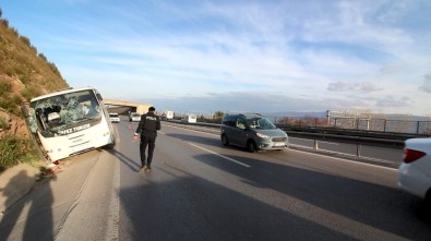 Kontrolden Çıkan Midibüs, Yol Kenarındaki Kayalık Alana Yan Yattı Açıklaması 1 Yaralı