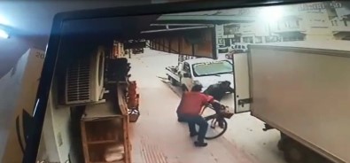 Marketten Çıkan Adamla Kaldırımda Seyreden Bisikletli Böyle Çarpıştı