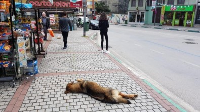 Bursa’da bir otobüs durağında hareketsiz yatan sokak köpeğini görenler büyük şaşkınlık yaşadı. Bazı mahalle sakinleri köpeğe bir şey olduğunu zannetti ancak gerçek çok geçmeden anlaşıldı.