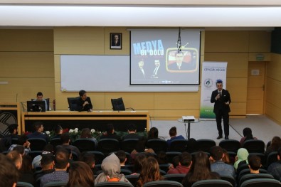 Ekranın arka planında neler yaşandığını anlatan Güngör ve Aydın, öğrencilere videolar eşliğinde bir sunum gerçekleştirdi. Spikerlerin yaptığı hatalardan bahseden Mehmet Aydın, canlı yayın sırasında mikrofon takıldığı zamandan itibaren hata yapılmaması gerektiğine vurgu yaptı. Sohbet havasında geçen etkinlikte Güngör ve Aydın kendi iş tecrübelerinden örnekler verdi. Etkinlik, soru-cevap kısmıyla devam etti.