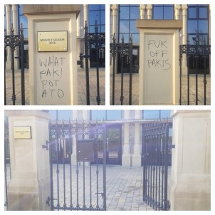 İngiltere’nin Preston kentinin Watling Caddesi’nde bulunan Masjid-e-Salaam caminin giriş kapılarına küfürlü ifadeler yazıldı. Yazıların olduğu bir fotoğraf caminin resmi