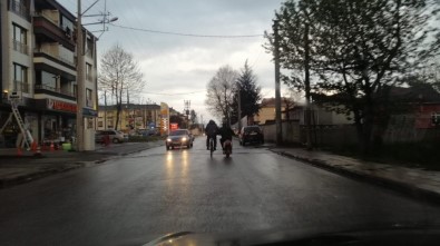 DÜZCE – Düzce’nin Fevzi Çakmak Mahallesi’nde elektrikli bisikletin, pedallı bisikleti itmesi ilginç görüntü oluşturdu. Ancak tehlikeli olan sürüş esnasında bisikletlileri gören sürücüler şaştı kaldı.