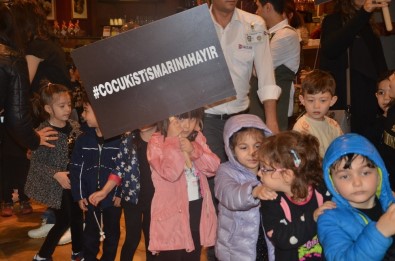 Çocuk istismarına dikkat çekmek amacıyla hazırlanan pankartları açan öğrenciler, çocuk şarkıları söyledi.