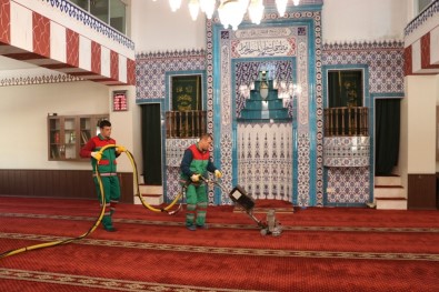 cami bahçesi, şadırvan ve tuvaletlerde yıkama ile dezenfekte işlemi gerçekleştirdi.