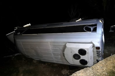 jandarma ekibi sevk edildi. Kaza yerine gelen kurtarma ekiplerinin minibüsten çıkarttığı yaralılar, ambulanslarla