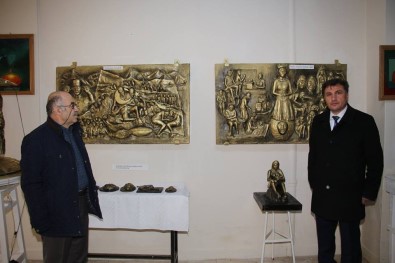 Oltu’da emekli öğretmen Neşet Demircan atölyesine açtığı Rölyef Heykel çalışmaları ile ilgili sergi görenleri etkiliyor.