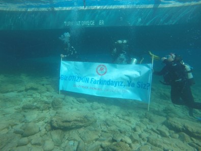 Su Altında 'Biz Otizmin Farkındayız, Ya Siz?' Pankartı Açtılar