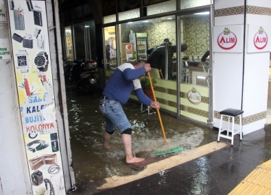 Kilis’te aniden bastıran yağmur ile dolu yağışı kentte trafikte aksamalara yol açarken bazı iş yerleri ile evleri su bastı.