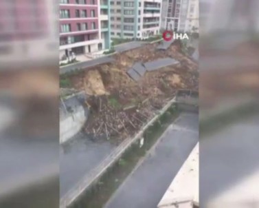 Başakşehir’de bir sitenin istinat duvarı çöktü. Duvar çöktükten hemen sonra toprağın kaymaya devam ettiği anlar kameralara yansıdı.