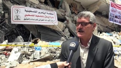 FKÖ'ye bağlı Gazze'deki Abdullah elHurani Belgeleme ve Araştırma Merkezinin bulunduğu 6 katlı apartman, 4 Mayıs'ta İsrail savaş uçakları tarafından hedef alınmasının ardından enkaza dönüştü Abdullah elHurani Belgeleme ve Araştırma Merkezi Müdürü Nahid Zekut:'İsrail, merkeze düzenlediği saldırıyla Filistin tarihi hakkında aralarında nadir bulunan kitapların da olduğu 10 bin kitap, belge ve arşivi imha etti''İsrail'in bu merkezi hedef alması Filistin bilinci ve kültürünü vurması anlamını taşıyor'.