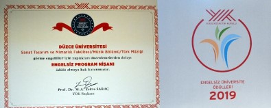 YÖK Engelsiz Erişim ve Engelsiz Eğitim sloganı ile üniversitelerde engelli bireylerin mekanlara ve sosyo-kültürel faaliyetlere erişimleri konusunda farkındalık oluşturması ve iyi uygulamaların yaygınlaştırılması için başlattığı çalışmada Düzce Üniversitesi “Engelsiz Program Nişanı” ödülünü almaya hak kazandı.