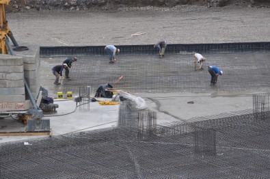 Kars’ta yapımına havaların ısınmasıyla birlikte yeninden başlanan Sultan Alpaslan Külliyesi’nin zemine demirciler ilmik ilmik demir işliyor. Sıcak hava ve güneşe aldırış etmeden alışan demirciler, külliyenin zemini adeta örgü gibi örüyor.