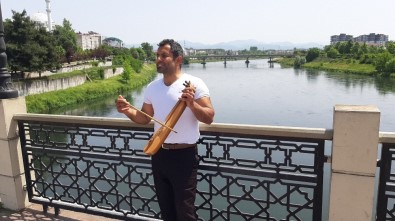 Habib Kemençe, kemençesi ile gün boyu köprü üzerinde türkü söylüyor.
