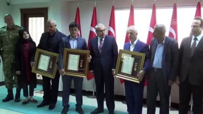 Vali Gündüzöz, konuşmasının ardından Suriye'nin Afrin bölgesinde şehit olan Uzman Onbaşı Fırat Karaca, 2016'da İstanbul'daki terör saldırısında şehit olan polis memuru Murat Yılmaz ve 2013'te Suriye sınırında şehit olan er Saddam Kalındodak'ın ailelerine Devlet Övünç Madalyası ve Beratı'nı takdim etti.