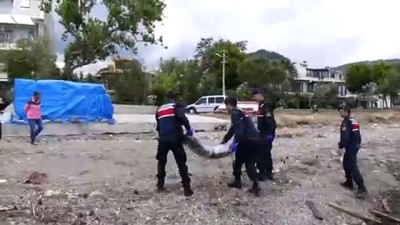 Jandarma ekipleri, Küçükkuyu Mahallesi'nde 5 kilometre uzunluğundaki sahilde olayla ilgili kontroller yaptı.