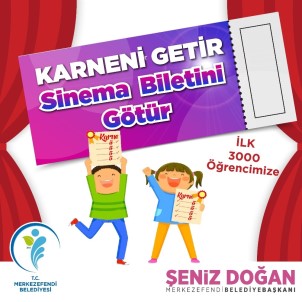 Denizli Merkezefendi Belediyesi, ilçe sınırları içerisinde eğitim ve öğretim gören ortaokul öğrencilerine karne hediyesi olarak sinema bileti verecek.