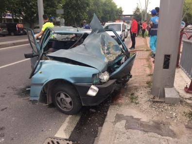 Kayseri’de aşırı hız nedeniyle meydana gelen kazada aşırı hızlı olduğu ileri sürülen otomobil aydınlatma direğine çarptı. Kaza nedeniyle otomobilin ön tarafı kağıt gibi ezilirken, yaralanan sürücü hastaneye kaldırıldı.