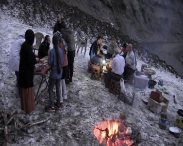 Artvin’in Borçka ilçesine bağlı bin 900 rakımlı Camili (Macahel) bölgesi Ramazan ayında sıcaktan bunalan vatandaşlara ev sahipliği yapıyor. Havaların ısınmasıyla Ramazan ayının son günlerinde iftarını açmak isteyen vatandaşlar Camili bölgesine çıkıyor. Kar üstüne kurulan iftar sofralarında toplanan vatandaşlar yakılan ateş etrafında toplanarak Ramazan geleneğini sürdürüyor. Bal ve tereyağını eriterek karın üstüne döken vatandaşlar kar tatlısı adını verdikleri tatlıyı gelen misafirlere ikram ediyor.