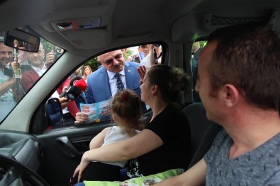 Eskişehir Valisi Özdemir Çakacak, trafik uygulamasına katılarak, aileleri ile birlikte yolculuk yapan çocuklara ‘Trafik Karnesi’ dağıttı.