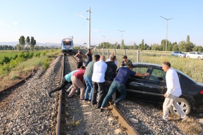 polis araçlarından siren çalındı. Vatandaşlar ise çıkarttıkları gömleklerini sallayarak treni durdurmayı başardı. Trenden inen yolcuların yardımı ile raylarda asılı kalan otomobil kurtarıldı. Tren de yoluna devam etti. Kaza ile ilgili inceleme başlatıldı.