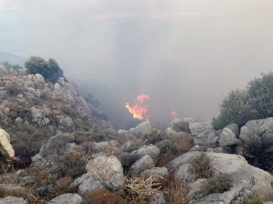 Datça Palamükbükü Verici tepesinde akşam saatlerinde elektrik tellerinden çıktığı öne sürülen makilik yangını ekiplerin müdahalene rağmen şiddetli rüzgâr nedeniyle kontrol altına alınamadı.