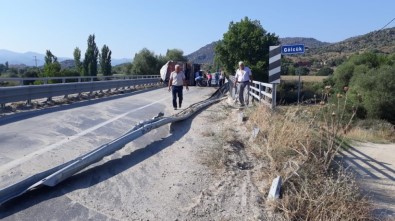 Çine-Karpuzlu yolunda meydana gelen trafik kazasında direksiyon hakimiyetini kaybeden kamyon köprüde devrildi. Kaza sırasında yolda başka bir aracın olmaması faciayı önledi.