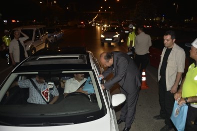 Denetimler sırasında, seyahat eden vatandaşların araçlarında bulunan çocuklara trafik karneleri ve broşürler, kırmızı düdük, kupa bardak, balon ile lokum ikram edildi.