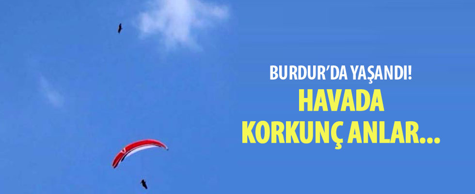 Burdur'da yamaç paraşütü yapan Uğur Sayın (43), gökyüzünde şahin saldırısına uğradı.