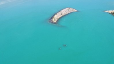 Doğunun gizli denizi olarak bilinen Hazar Gölü su seviyesi yükselmesiyle birlikte mavi bir görüntüye kavuşurken, bu yıl yağışın fazla olmasıyla birlikte batık şehrin kalıntıları su altında kaldı, daha önce görünen 1,5 kilometrelik kale surları da görünmez oldu.