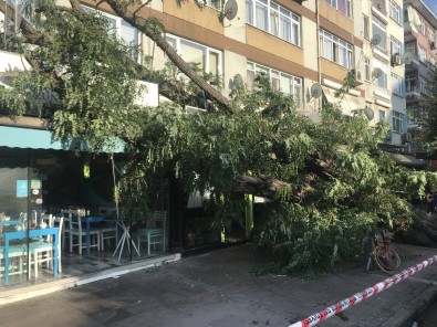 Beşiktaş’ta kökünden kırılan yaklaşık 50 yıllık ağaç bir binanın üzerine devrilirken, ağaç dallarının zarar verdiği kafede kimsenin olmaması olası faciayı önledi.