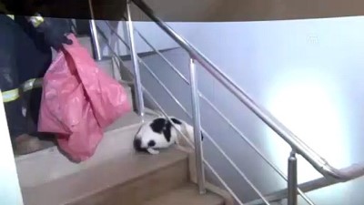 Gaziantep'in İslahiye ilçesinde, bir apartmanın çatı katındaki asansör makinesi dairesinde mahsur kalan kedi itfaiye ekiplerince kurtarıldı.