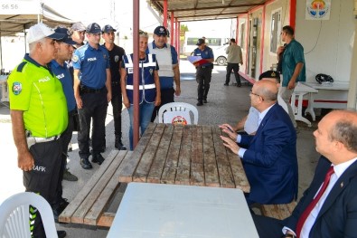 Kontrol noktasında bulunan vatandaşların Kurban Bayramını kutlayan ve onlara ikramlarda bulunan Vali Demirtaş, emniyet kemeri takmanın önemine değindi.