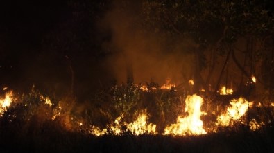 Gece yarısı, mandalina bahçesinden dumanların yükseldiğini gören vatandaşlar itfaiyeye haber verdi. Yangın kısa sürede yayılırken, yüzlerce mandalina ve badem ağacı kül oldu. Yangına 4