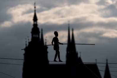 Fransız ip cambazı Tatiana-Mosio Bongonga, Çekya’daki Vltava Nehri’nin üzerinde 35 metre yükseklikte 40 dakika boyunca nefes kesen bir yürüyüş gerçekleştirdi.