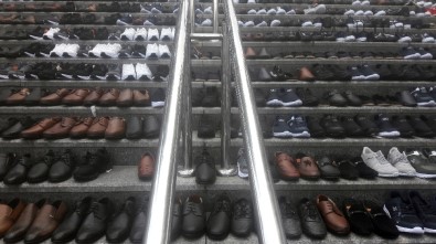 Eminönü'nde Esnaf Kurtardığı Ayakkabıları Merdivenlere Serdi