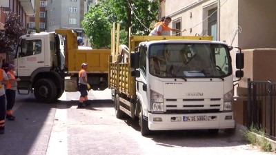 Ev sahibi ile eşinin ve çocuklarının dışarı çıkarılmasının ardından çöpler, belediye temizlik işçileri tarafından kamyonlara yüklendi.