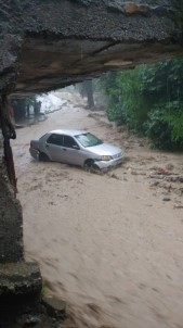 Zonguldak’ta aniden bastıran şiddetli yağışla beraber ara mahalleler nehre döndü. Şiddetli akıntıya kapılan araç yokuş boyunca sürüklendi.