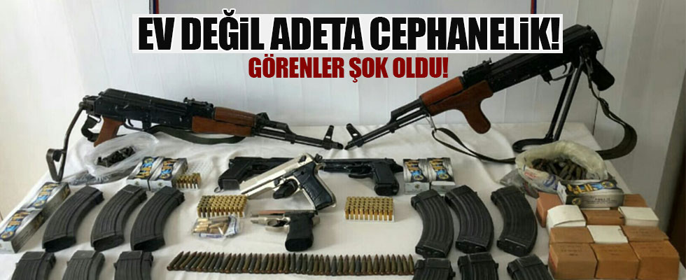 Sivas’ta jandarma tarafından operasyon düzenlenen ev adeta cephanelik çıktı.