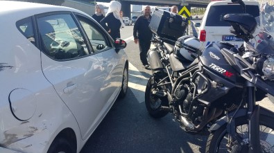 TEM Otoyolu’nda aniden yan yola girmek isteyen araca arkasından gelen motosiklet çarptı. Yola savrularak yaralanan motosiklet sürücüsünü arkadaşları bir an olsun yalnız bırakmadı.