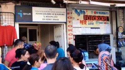 Adana'da genelindeki okullara 2 bin 180 kişinin alınacağı hizmetli, temizlik ve güvenlik görevlisi işleri için başvurmak isteyenler Adana Çalışma ve İş Kurumu Müdürlüğü binaları önünde uzun kuyruklar oluşturdu.