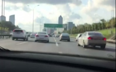 TEM Otoyolu Seyrantepe mevkiinde lüks otomobilli iki maganda, süratli bir şekilde araçların arasında “makas” atarak ve yarışarak trafiği tehlikeye düşürdü. Otomobildeki bir kişi o anları kaydedip bir de sosyal medyada yayınladı.