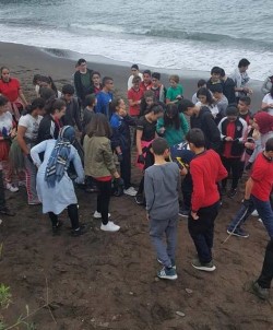Ordu’nun Fatsa ilçesinde ilk ve ortaokul öğrencileri, düzenledikleri etkinlik kapsamında kumsalda çöp topladı.
