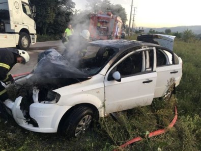 Otomobil Direğe Çarptı, Alev Aldı Açıklaması 1 Yaralı