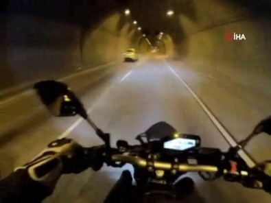 Dolmabahçe-Bomonti Tüneli’nde “drift” diye tabir edilen yanlama hareketini yapmaya çalışan motosikletli maganda, kontrolü kaybedip motosikletli arkadaşına çarptı. Yere savrularak metrelerce sürüklenen arkadaşı hafif şekilde yaralandı. Sürücüler kask kamerasına yansıyan o anları sosyal medyada paylaştı.